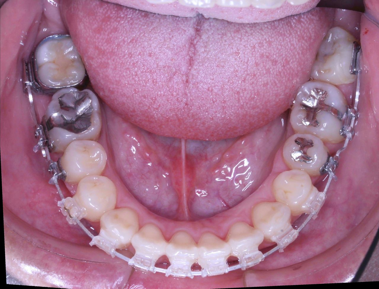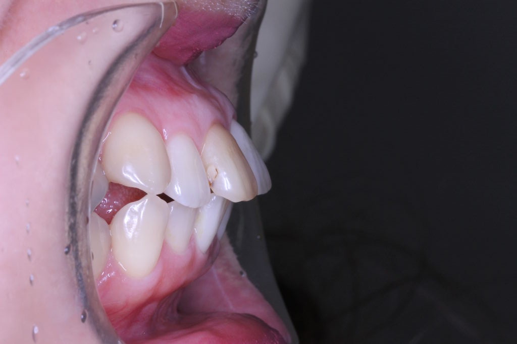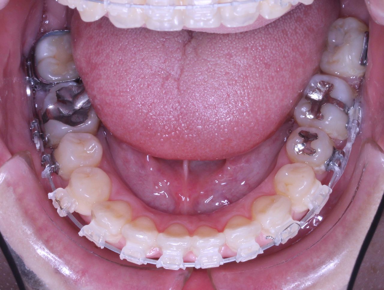 現在は他のクリニックで歯列矯正を一切しない方法で治療を開始しており、かみ合わせがおかしくうまくいっていないような気がするとのことでコメントを求めての来院でした。