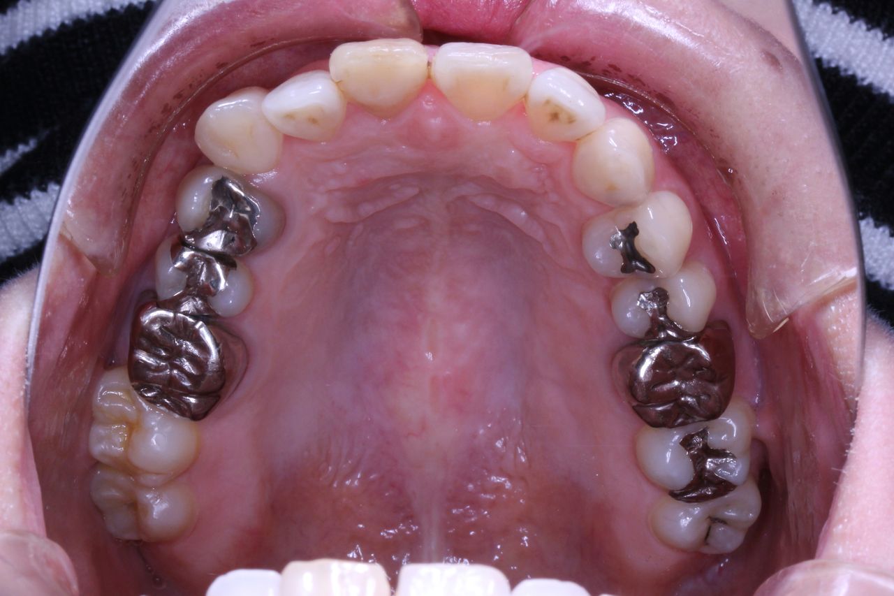 結論としては、治療期間が長くかかってもかまわないので、銀歯を抜いて矯正治療をしたいとのことでした。